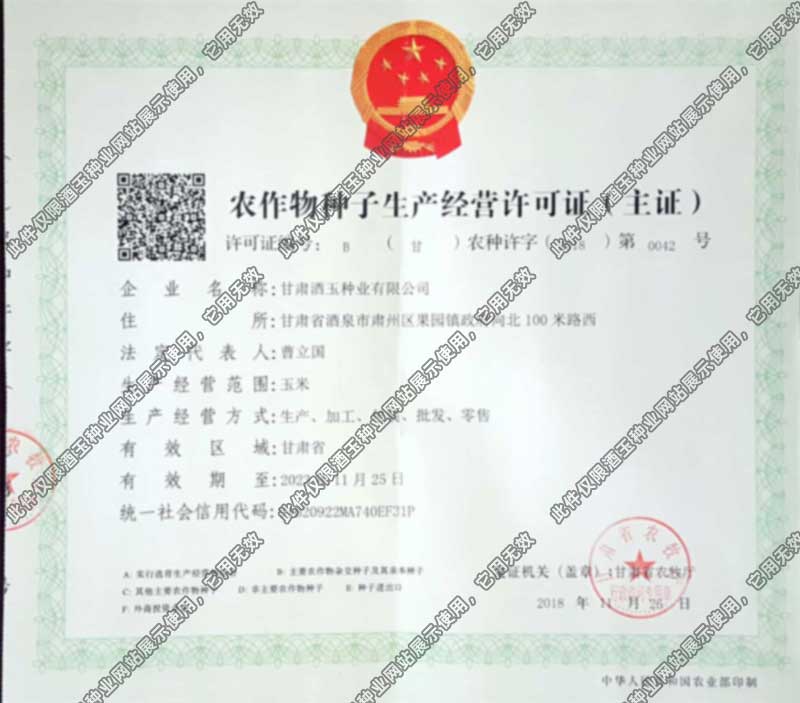 酒玉種業(yè)種子生產(chǎn)經(jīng)營許可..