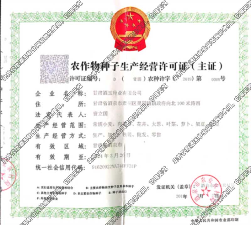 酒玉市級種子生產(chǎn)經(jīng)營許可..