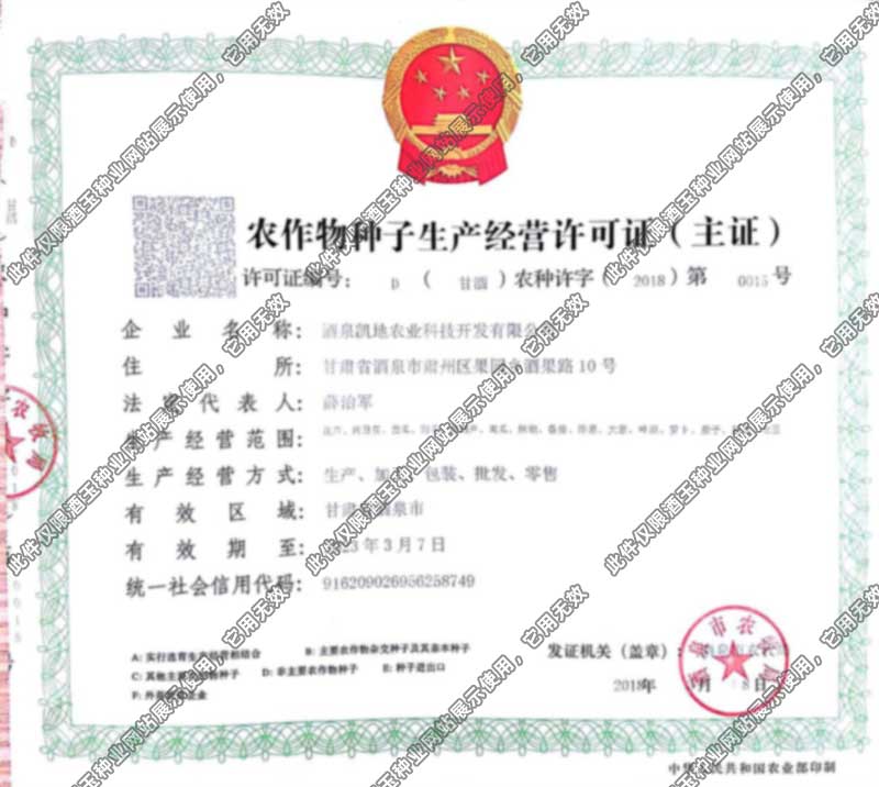 凱地農(nóng)業(yè)種子生產(chǎn)經(jīng)營許可..